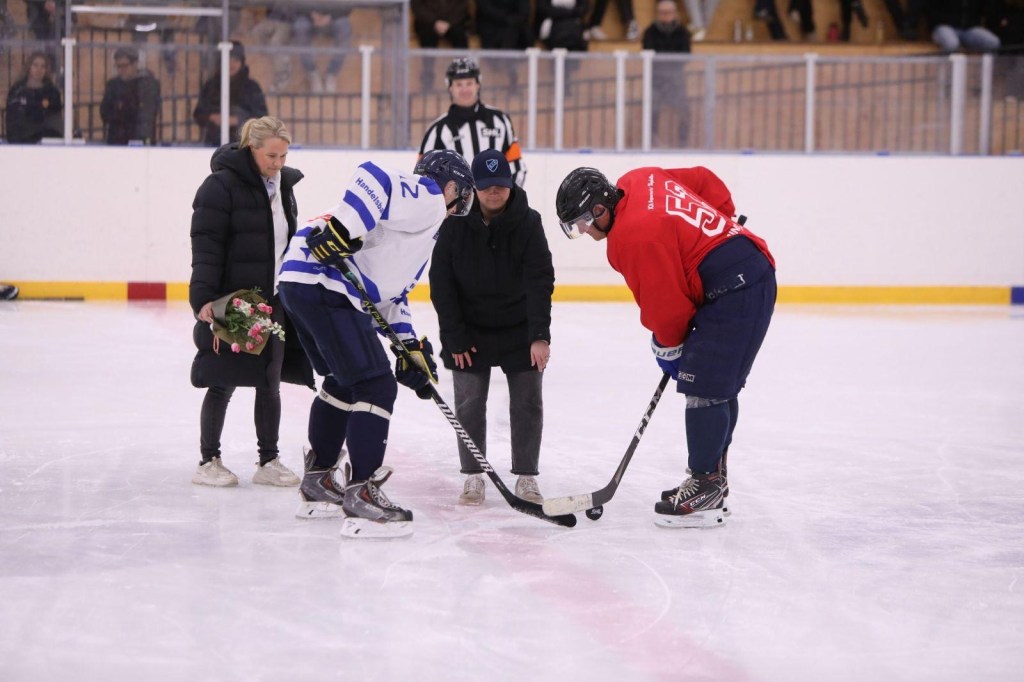 Före matchstart släppte en huvudperson, Sara, pucken som en symbolisk gest och jag själv fick några frågor av Tomas Frändén. Hela eventet andades kärlek och gemenskap och det var tydligt att det fanns ett större syfte med dagen. Det låg liksom i luften och spelarna på isen såg ut att ha det väldigt kul. När två av spelarna från respektive motståndarlag under en situation kramade om varandra och samtidigt dansade fram i något som såg ut som en slags pardans som kunde varit hämtad ur let´s dance, fick det publiken att roas och stämningen att höjas ytterligare. Värt att nämna också var att det fanns fler som bidrog till att hela eventet blev så bra. Bland annat ställde pensionärer upp och stod i kaféet där dem sålde enklare förtäring för att inte tala om övriga som fanns med på olika sätt under dagen eller spelare som åkt långväga för att delta. Med i laguppställningen fanns även en före detta OS-stjärna.